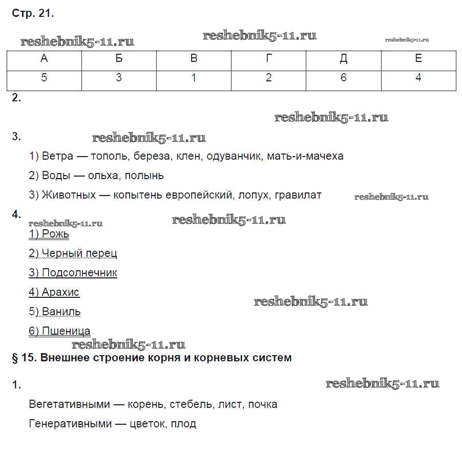 Готовая домашняя работа с ответами по Биологии за 6 класс Исаева, Романова Рабочая тетрадь Инновационная школа Русское слово 2017 ФГОС - Страницы 21