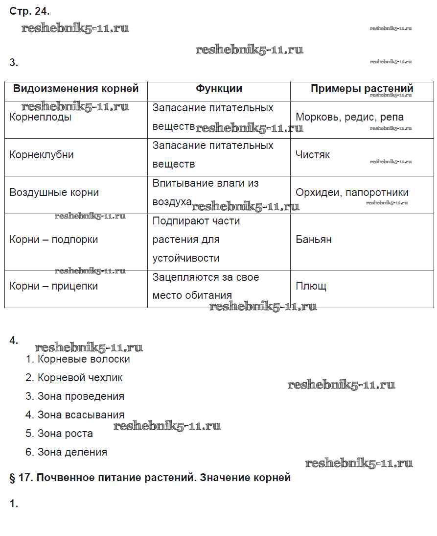 Готовая домашняя работа с ответами по Биологии за 6 класс Исаева, Романова Рабочая тетрадь Инновационная школа Русское слово 2017 ФГОС - Страницы 24