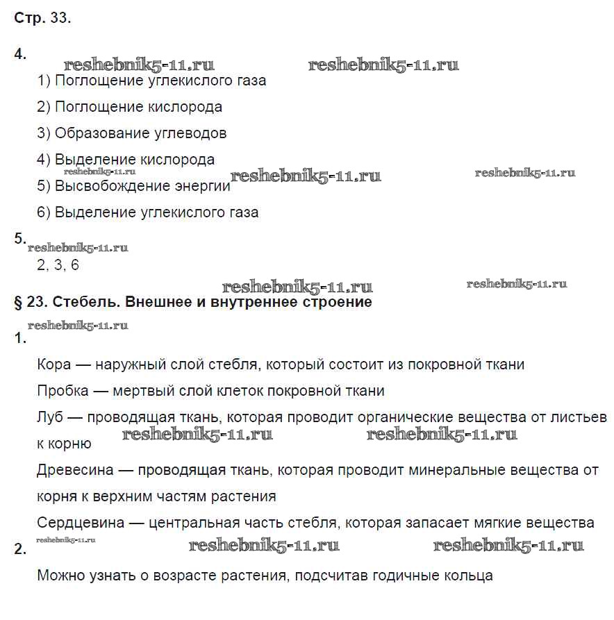 Готовая домашняя работа с ответами по Биологии за 6 класс Исаева, Романова Рабочая тетрадь Инновационная школа Русское слово 2017 ФГОС - Страницы 33