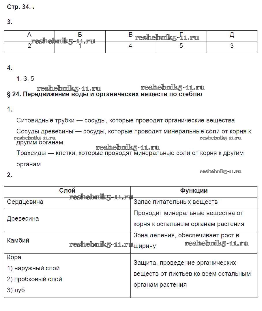Готовая домашняя работа с ответами по Биологии за 6 класс Исаева, Романова Рабочая тетрадь Инновационная школа Русское слово 2017 ФГОС - Страницы 34