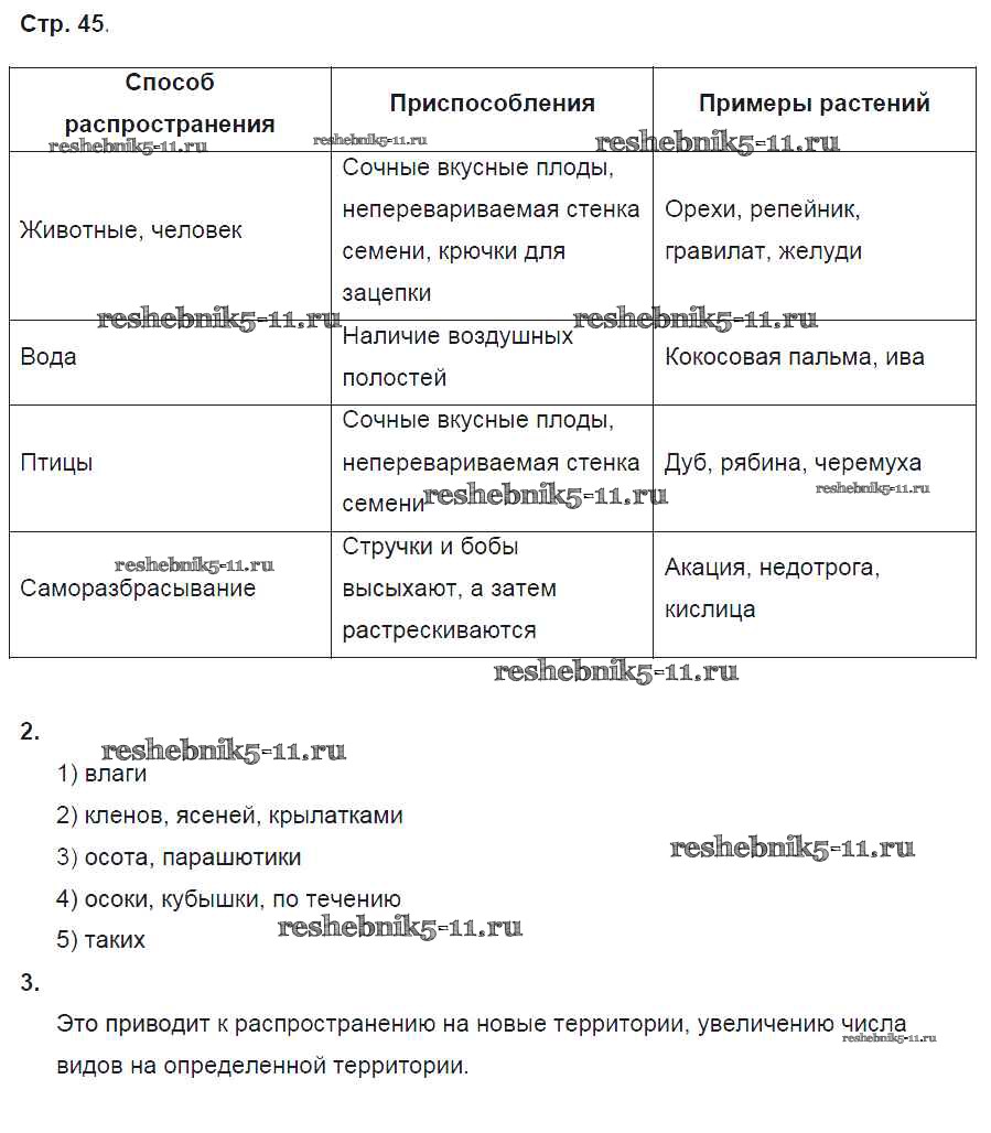 Готовая домашняя работа с ответами по Биологии за 6 класс Исаева, Романова Рабочая тетрадь Инновационная школа Русское слово 2017 ФГОС - Страницы 45