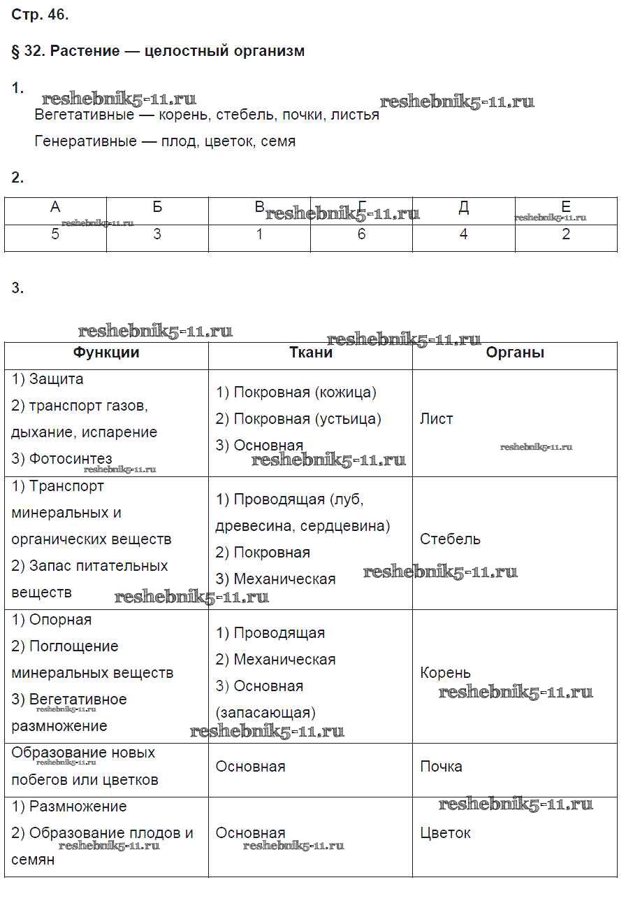 Готовая домашняя работа с ответами по Биологии за 6 класс Исаева, Романова Рабочая тетрадь Инновационная школа Русское слово 2017 ФГОС - Страницы 46