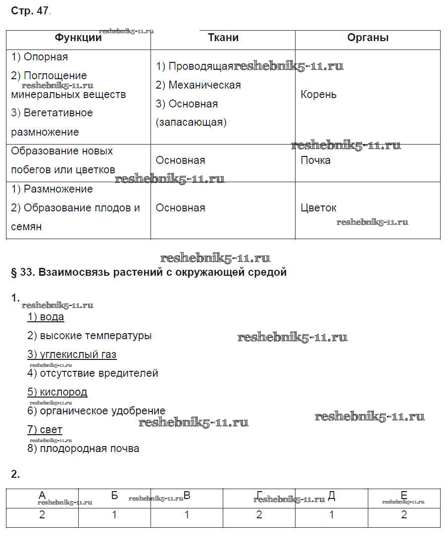 Готовая домашняя работа с ответами по Биологии за 6 класс Исаева, Романова Рабочая тетрадь Инновационная школа Русское слово 2017 ФГОС - Страницы 47
