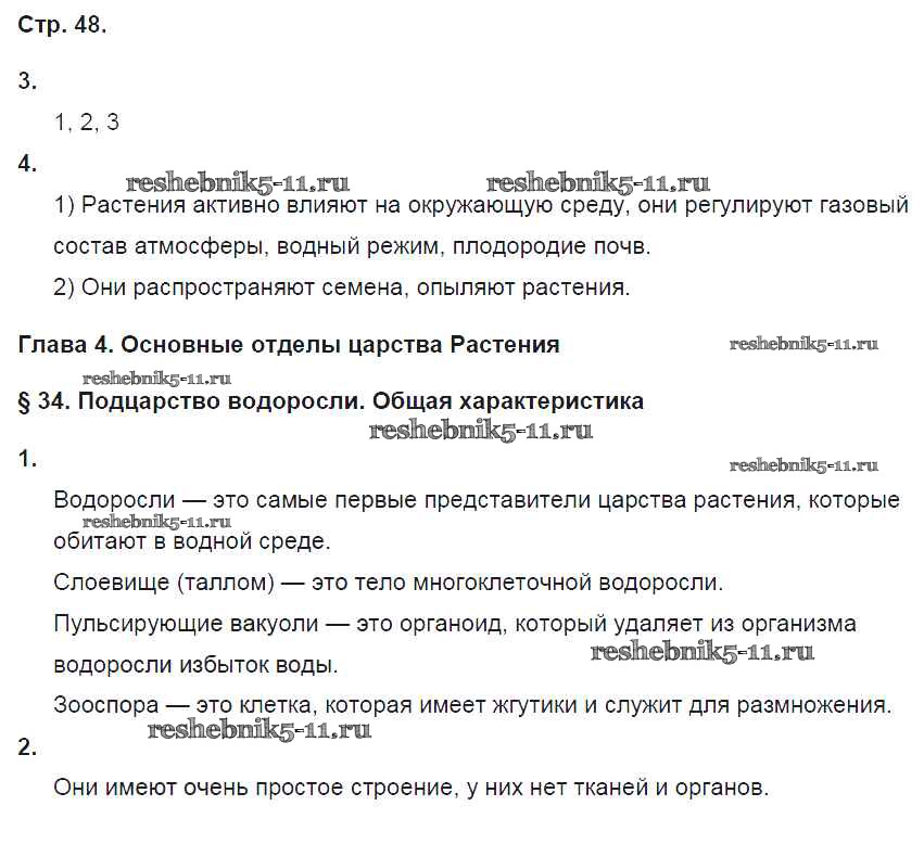 Готовая домашняя работа с ответами по Биологии за 6 класс Исаева, Романова Рабочая тетрадь Инновационная школа Русское слово 2017 ФГОС - Страницы 48