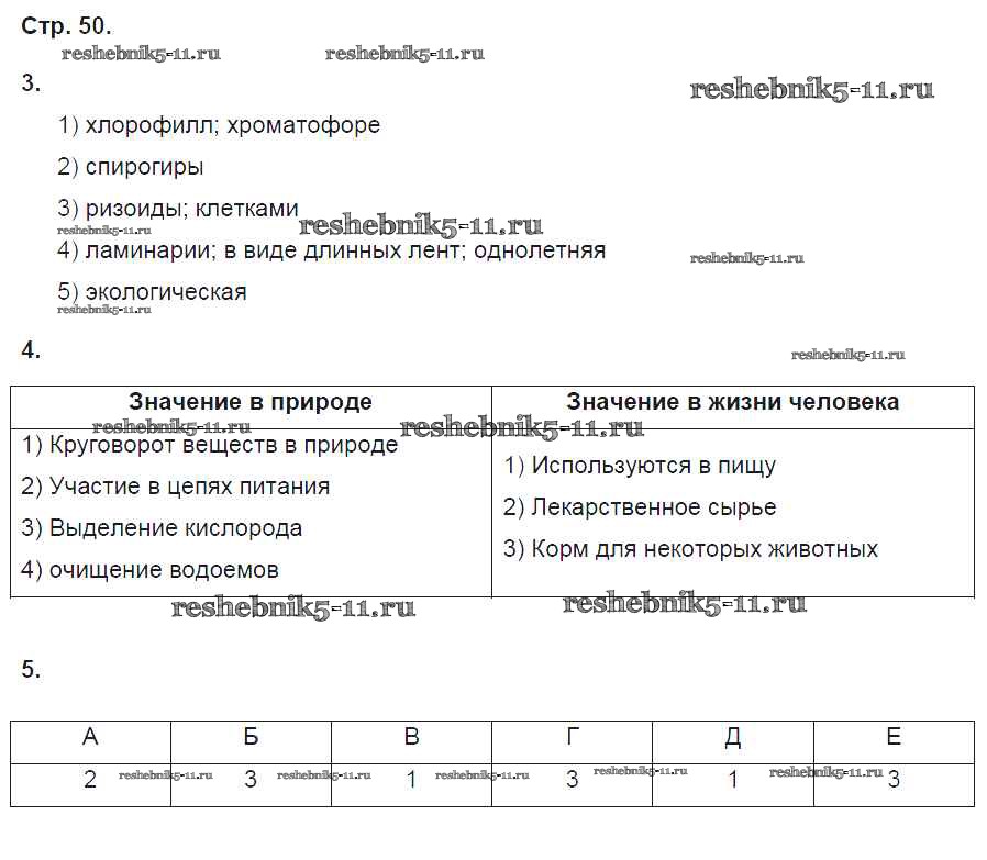 Готовая домашняя работа с ответами по Биологии за 6 класс Исаева, Романова Рабочая тетрадь Инновационная школа Русское слово 2017 ФГОС - Страницы 50
