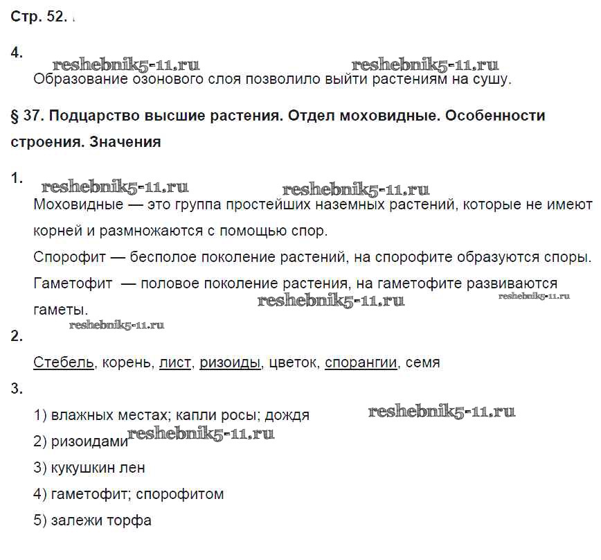 Готовая домашняя работа с ответами по Биологии за 6 класс Исаева, Романова Рабочая тетрадь Инновационная школа Русское слово 2017 ФГОС - Страницы 52