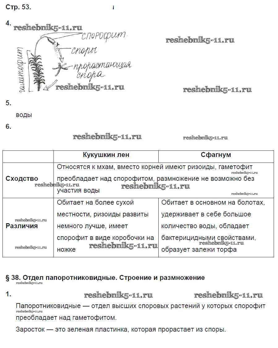Готовая домашняя работа с ответами по Биологии за 6 класс Исаева, Романова Рабочая тетрадь Инновационная школа Русское слово 2017 ФГОС - Страницы 53