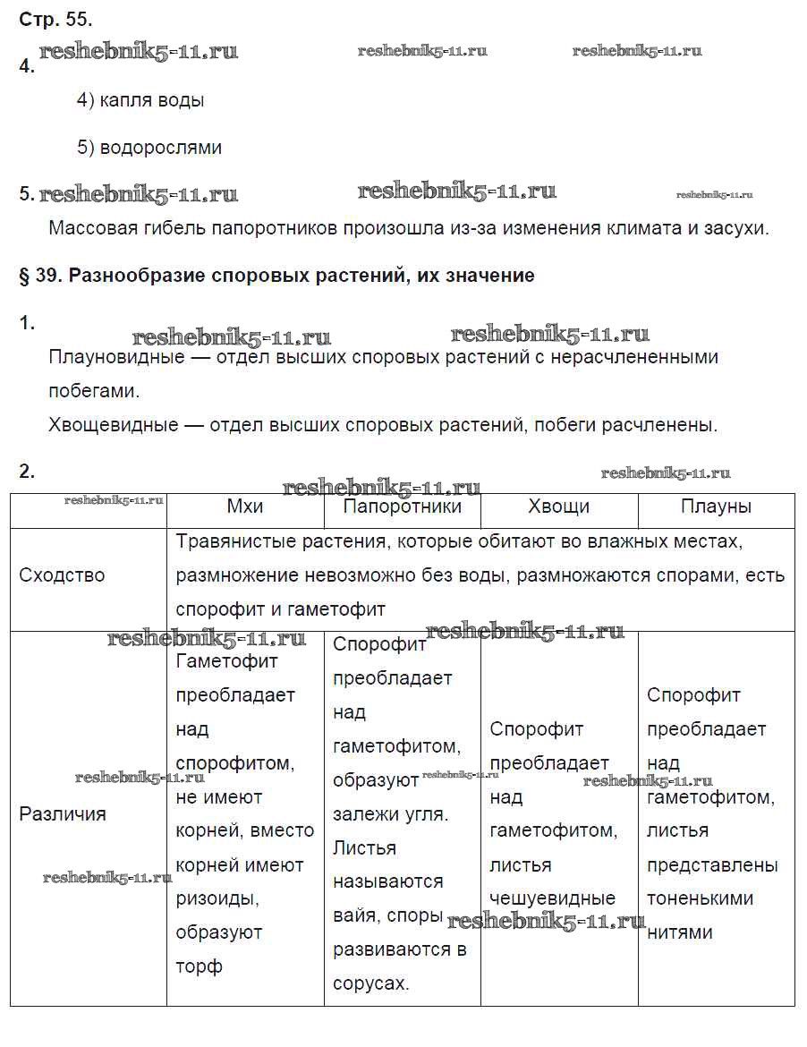 Готовая домашняя работа с ответами по Биологии за 6 класс Исаева, Романова Рабочая тетрадь Инновационная школа Русское слово 2017 ФГОС - Страницы 55
