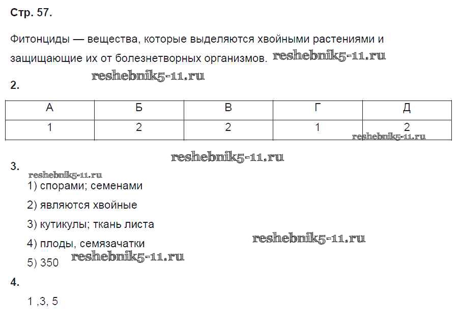 Готовая домашняя работа с ответами по Биологии за 6 класс Исаева, Романова Рабочая тетрадь Инновационная школа Русское слово 2017 ФГОС - Страницы 57