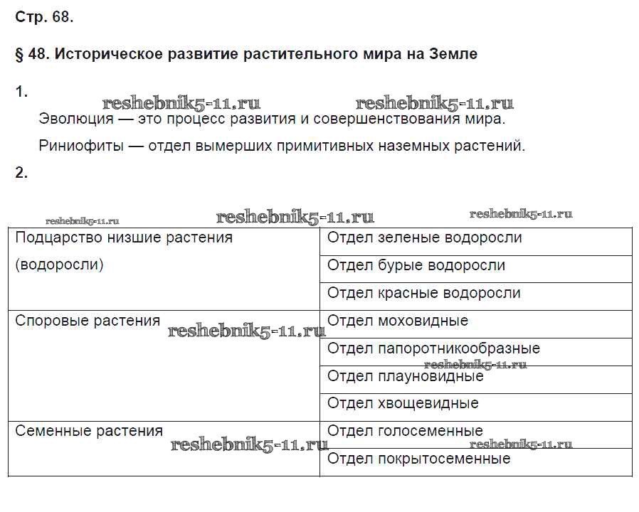 Готовая домашняя работа с ответами по Биологии за 6 класс Исаева, Романова Рабочая тетрадь Инновационная школа Русское слово 2017 ФГОС - Страницы 68