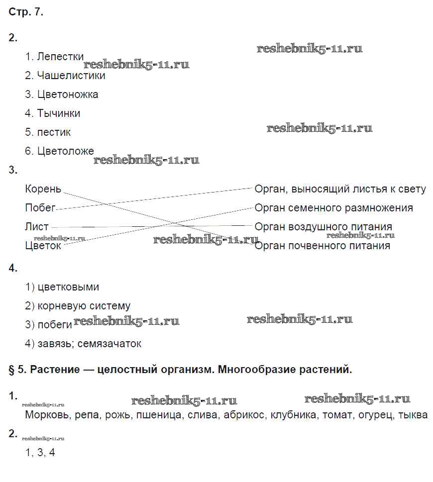 Готовая домашняя работа с ответами по Биологии за 6 класс Исаева, Романова Рабочая тетрадь Инновационная школа Русское слово 2017 ФГОС - Страницы 7