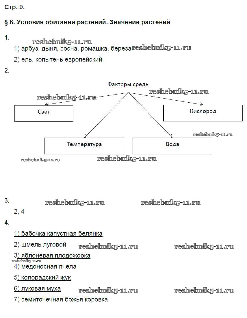 Готовая домашняя работа с ответами по Биологии за 6 класс Исаева, Романова Рабочая тетрадь Инновационная школа Русское слово 2017 ФГОС - Страницы 9