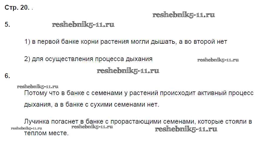 Готовая домашняя работа с ответами по Биологии за 6 класс Пасечник, Суматохин, Калинова, Швецов, Гапонюк Рабочая тетрадь Линия жизни Просвещение 2018 ФГОС - Страницы 20