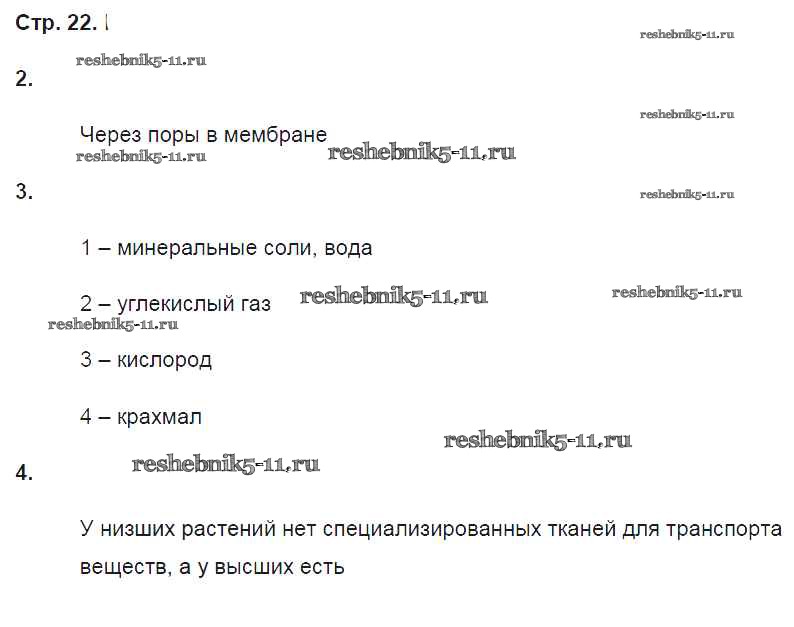 Готовая домашняя работа с ответами по Биологии за 6 класс Пасечник, Суматохин, Калинова, Швецов, Гапонюк Рабочая тетрадь Линия жизни Просвещение 2018 ФГОС - Страницы 22