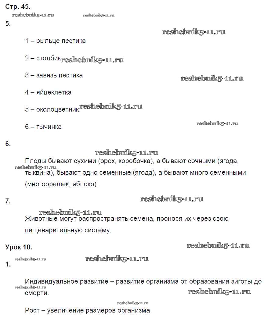 Готовая домашняя работа с ответами по Биологии за 6 класс Пасечник, Суматохин, Калинова, Швецов, Гапонюк Рабочая тетрадь Линия жизни Просвещение 2018 ФГОС - Страницы 45