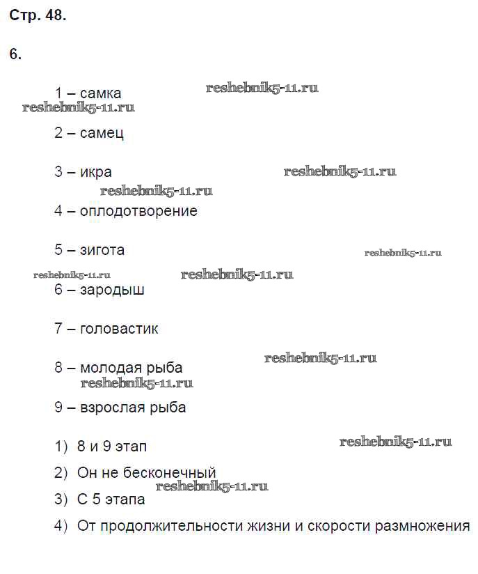 Готовая домашняя работа с ответами по Биологии за 6 класс Пасечник, Суматохин, Калинова, Швецов, Гапонюк Рабочая тетрадь Линия жизни Просвещение 2018 ФГОС - Страницы 48