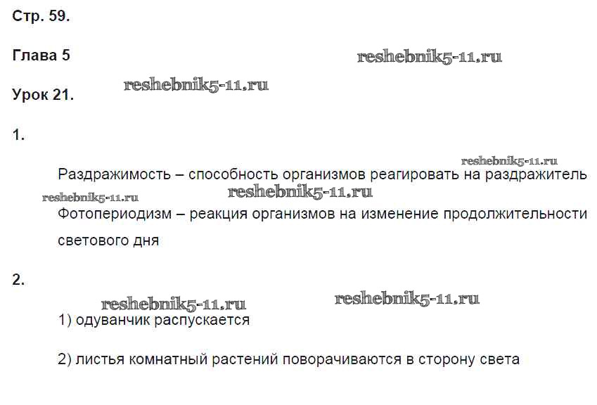 Готовая домашняя работа с ответами по Биологии за 6 класс Пасечник, Суматохин, Калинова, Швецов, Гапонюк Рабочая тетрадь Линия жизни Просвещение 2018 ФГОС - Страницы 59