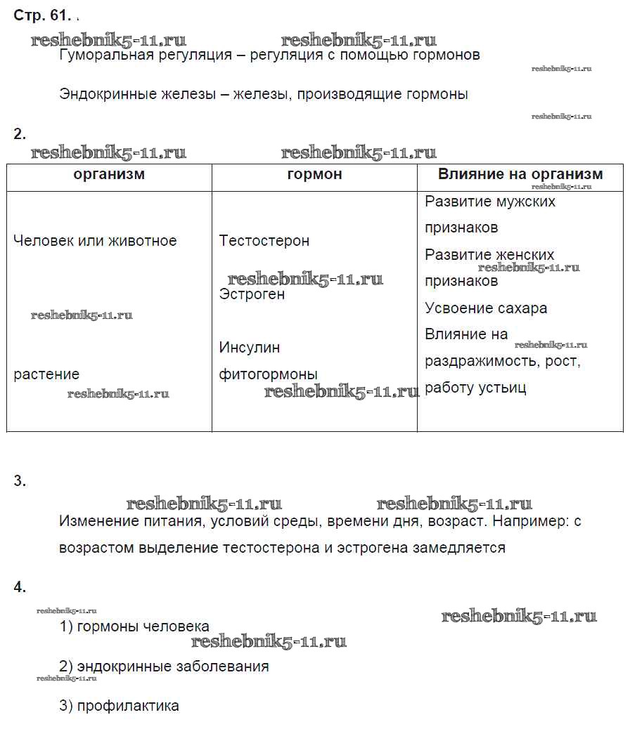 Готовая домашняя работа с ответами по Биологии за 6 класс Пасечник, Суматохин, Калинова, Швецов, Гапонюк Рабочая тетрадь Линия жизни Просвещение 2018 ФГОС - Страницы 61