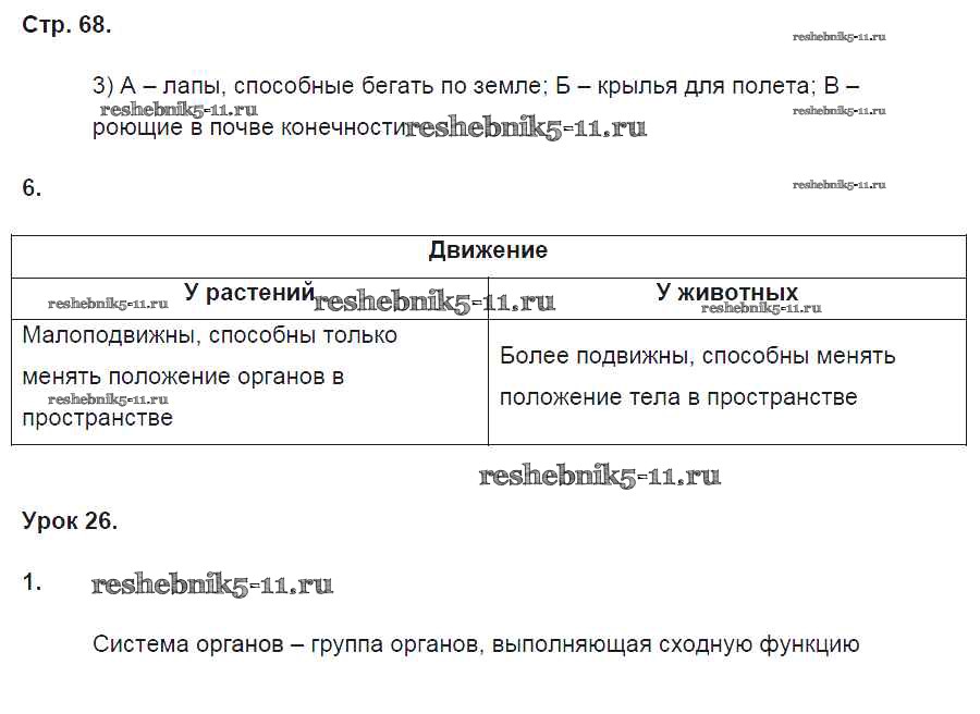 Готовая домашняя работа с ответами по Биологии за 6 класс Пасечник, Суматохин, Калинова, Швецов, Гапонюк Рабочая тетрадь Линия жизни Просвещение 2018 ФГОС - Страницы 68