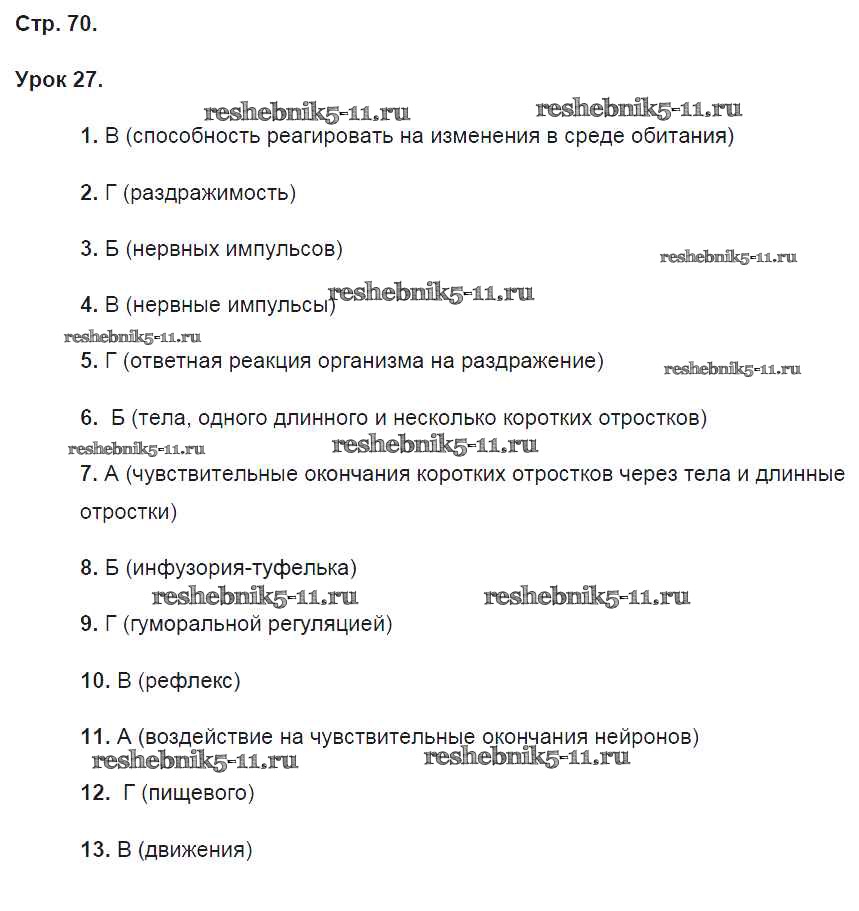 Готовая домашняя работа с ответами по Биологии за 6 класс Пасечник, Суматохин, Калинова, Швецов, Гапонюк Рабочая тетрадь Линия жизни Просвещение 2018 ФГОС - Страницы 70