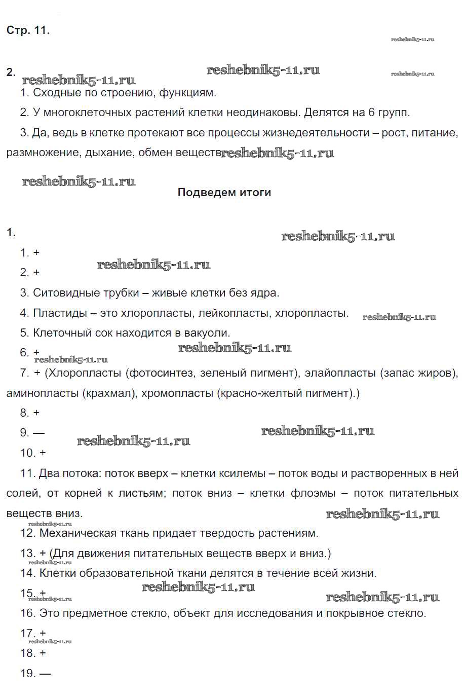 Готовая домашняя работа с ответами по Биологии за 6 класс Пономарева, Корнилова, Кучменко Рабочая тетрадь Алгоритм успеха Часть 1, 2 Вентана-граф 2020 ФГОС - Часть 1. Страницы 11