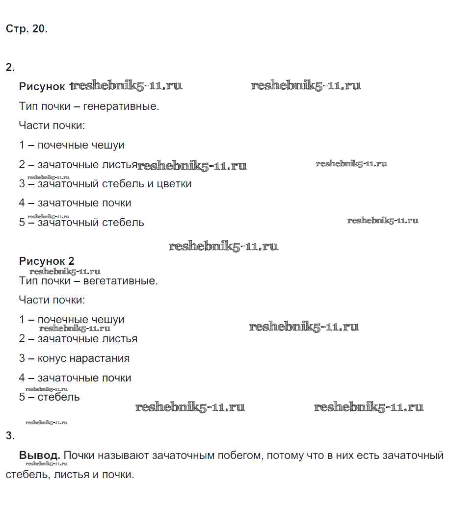 Готовая домашняя работа с ответами по Биологии за 6 класс Пономарева, Корнилова, Кучменко Рабочая тетрадь Алгоритм успеха Часть 1, 2 Вентана-граф 2020 ФГОС - Часть 1. Страницы 20