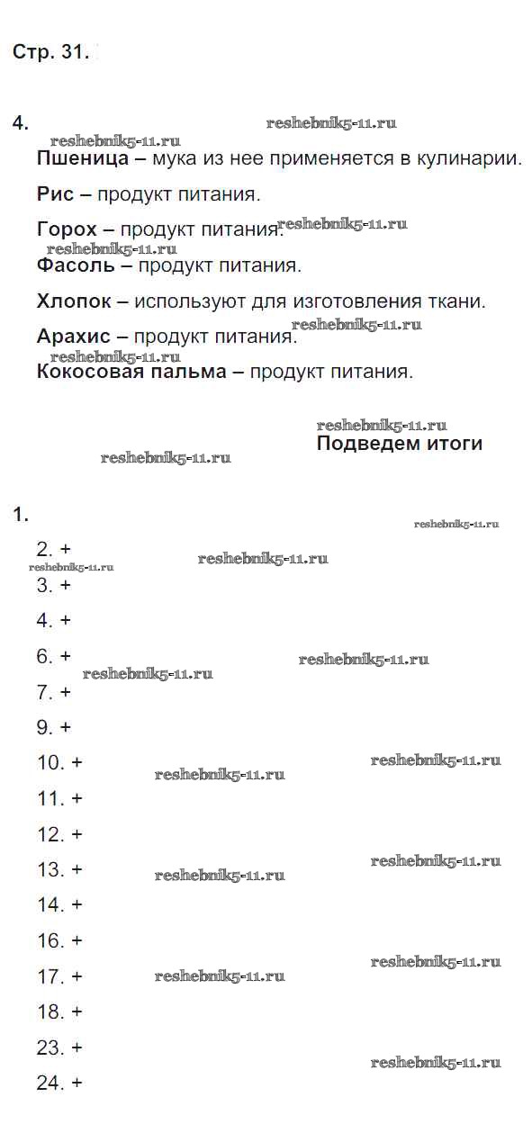 Готовая домашняя работа с ответами по Биологии за 6 класс Пономарева, Корнилова, Кучменко Рабочая тетрадь Алгоритм успеха Часть 1, 2 Вентана-граф 2020 ФГОС - Часть 1. Страницы 31