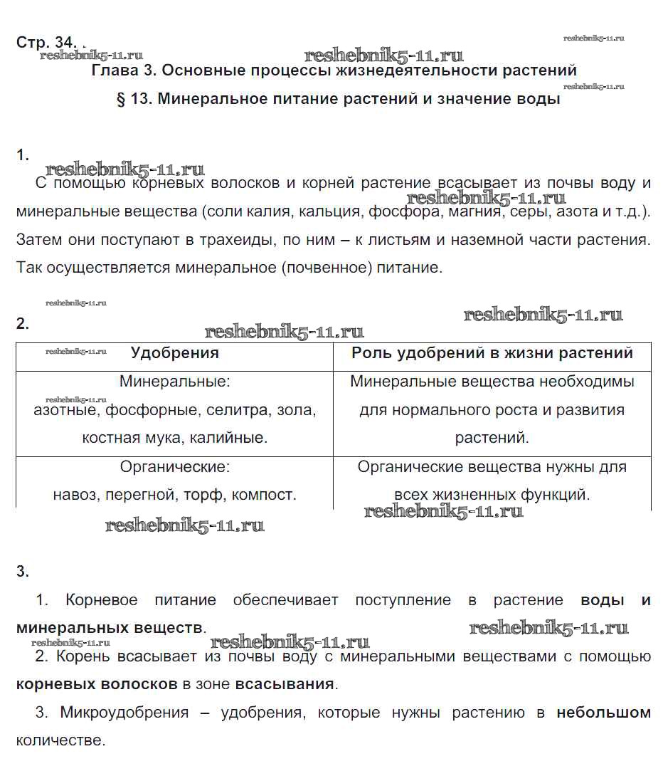 Готовая домашняя работа с ответами по Биологии за 6 класс Пономарева, Корнилова, Кучменко Рабочая тетрадь Алгоритм успеха Часть 1, 2 Вентана-граф 2020 ФГОС - Часть 1. Страницы 34