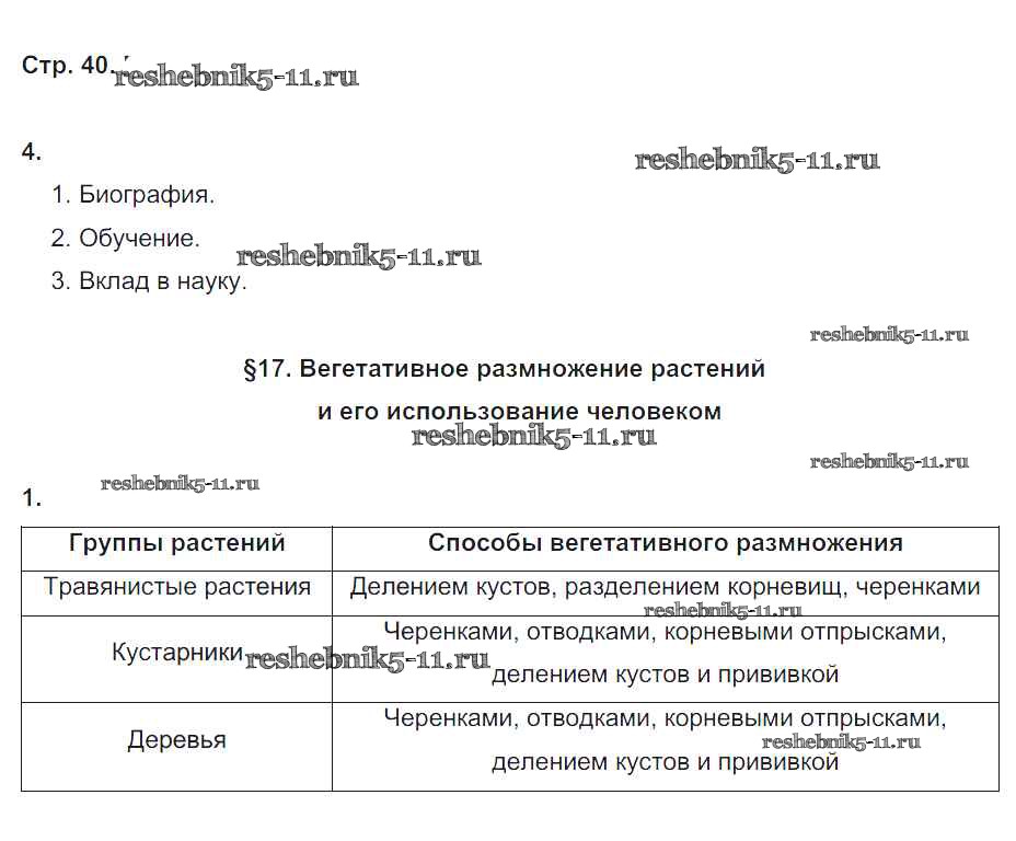 Готовая домашняя работа с ответами по Биологии за 6 класс Пономарева, Корнилова, Кучменко Рабочая тетрадь Алгоритм успеха Часть 1, 2 Вентана-граф 2020 ФГОС - Часть 1. Страницы 40