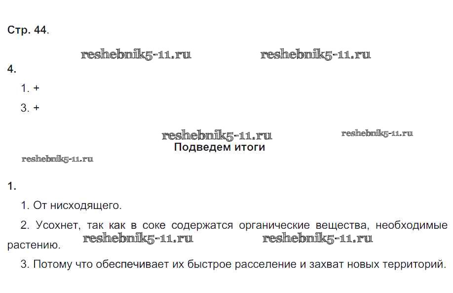 Готовая домашняя работа с ответами по Биологии за 6 класс Пономарева, Корнилова, Кучменко Рабочая тетрадь Алгоритм успеха Часть 1, 2 Вентана-граф 2020 ФГОС - Часть 1. Страницы 44