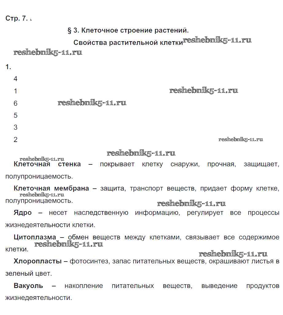 Готовая домашняя работа с ответами по Биологии за 6 класс Пономарева, Корнилова, Кучменко Рабочая тетрадь Алгоритм успеха Часть 1, 2 Вентана-граф 2020 ФГОС - Часть 1. Страницы 7