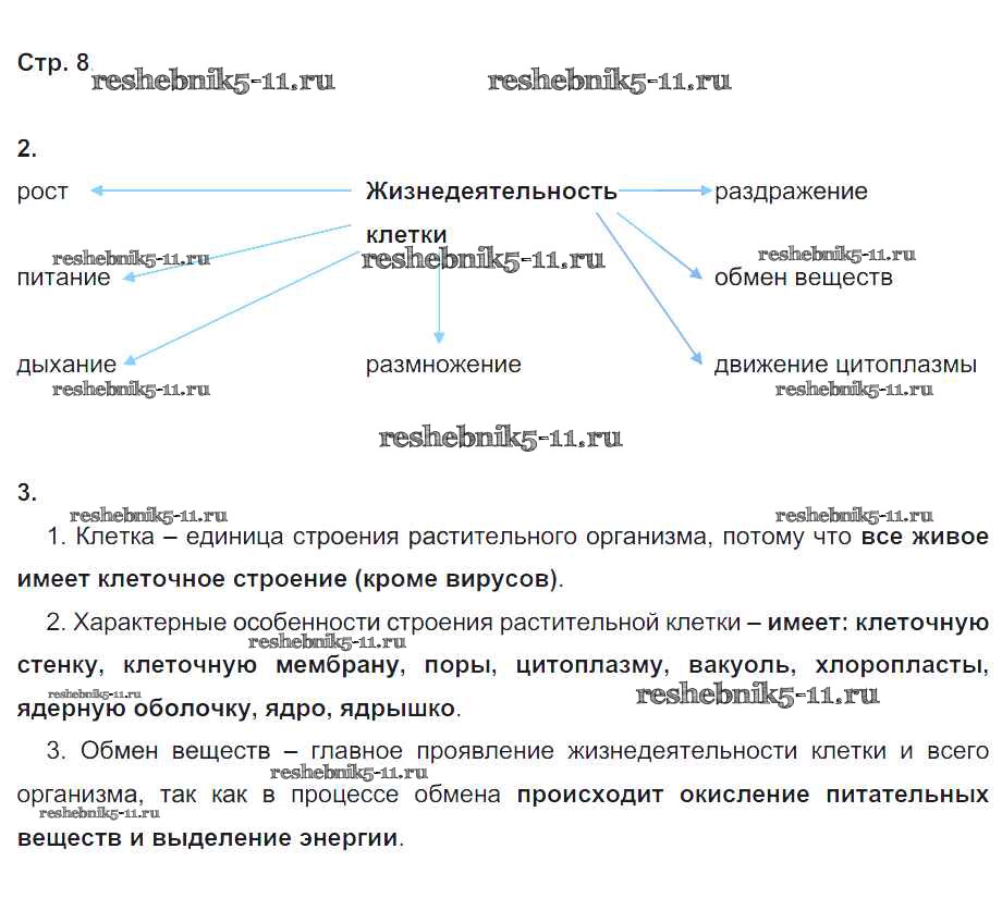Готовая домашняя работа с ответами по Биологии за 6 класс Пономарева, Корнилова, Кучменко Рабочая тетрадь Алгоритм успеха Часть 1, 2 Вентана-граф 2020 ФГОС - Часть 1. Страницы 8