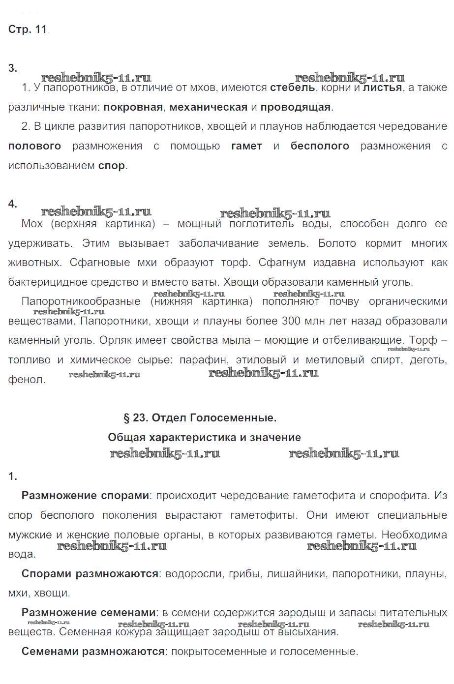 Готовая домашняя работа с ответами по Биологии за 6 класс Пономарева, Корнилова, Кучменко Рабочая тетрадь Алгоритм успеха Часть 1, 2 Вентана-граф 2020 ФГОС - Часть 2. Страницы 11