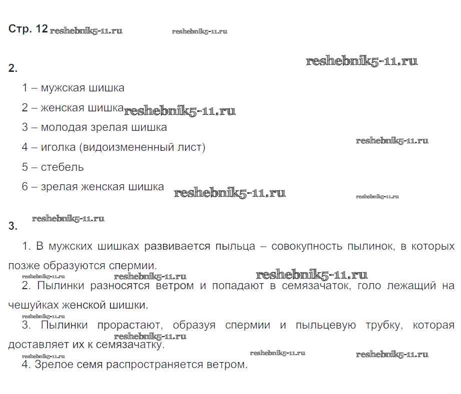 Готовая домашняя работа с ответами по Биологии за 6 класс Пономарева, Корнилова, Кучменко Рабочая тетрадь Алгоритм успеха Часть 1, 2 Вентана-граф 2020 ФГОС - Часть 2. Страницы 12