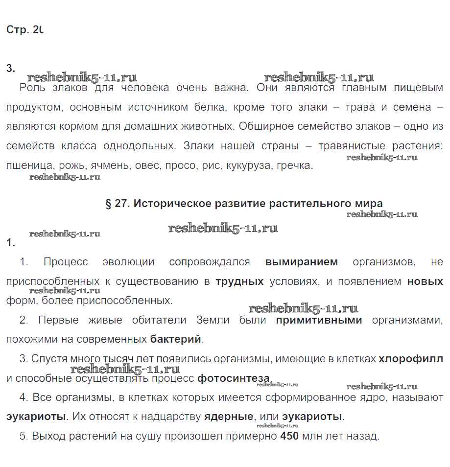 Готовая домашняя работа с ответами по Биологии за 6 класс Пономарева, Корнилова, Кучменко Рабочая тетрадь Алгоритм успеха Часть 1, 2 Вентана-граф 2020 ФГОС - Часть 2. Страницы 20