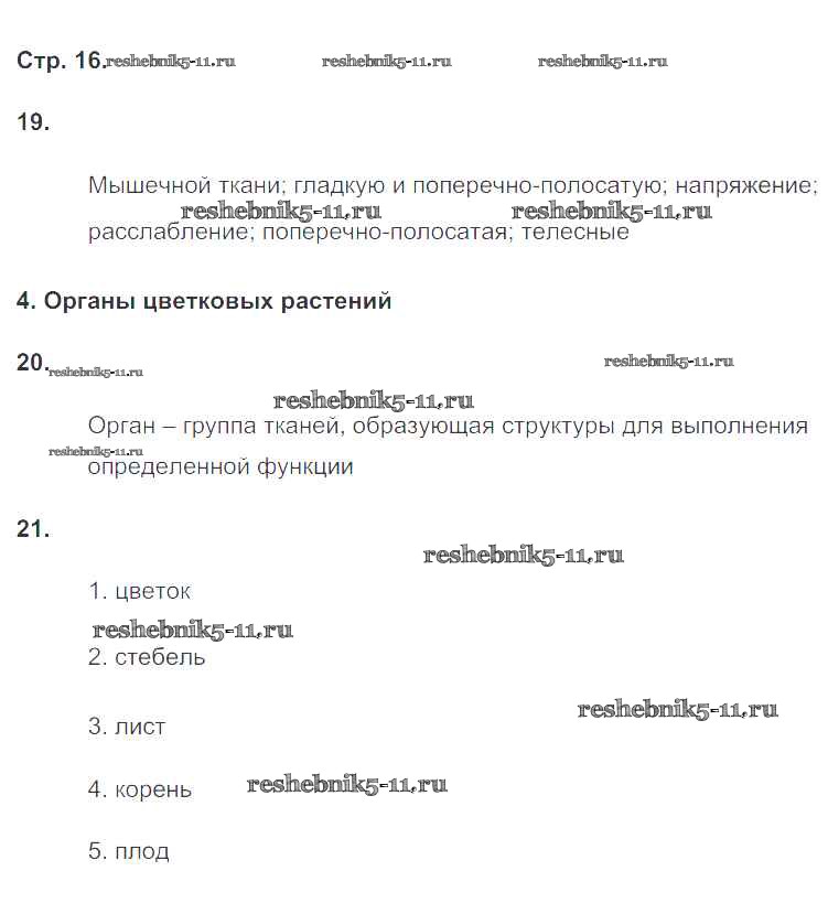 Готовая домашняя работа с ответами по Биологии за 6 класс Сонин Рабочая тетрадь Живой организм Дрофа 2020 ФГОС - Страницы 16