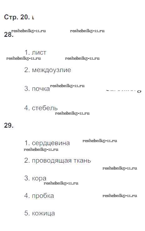Готовая домашняя работа с ответами по Биологии за 6 класс Сонин Рабочая тетрадь Живой организм Дрофа 2020 ФГОС - Страницы 20