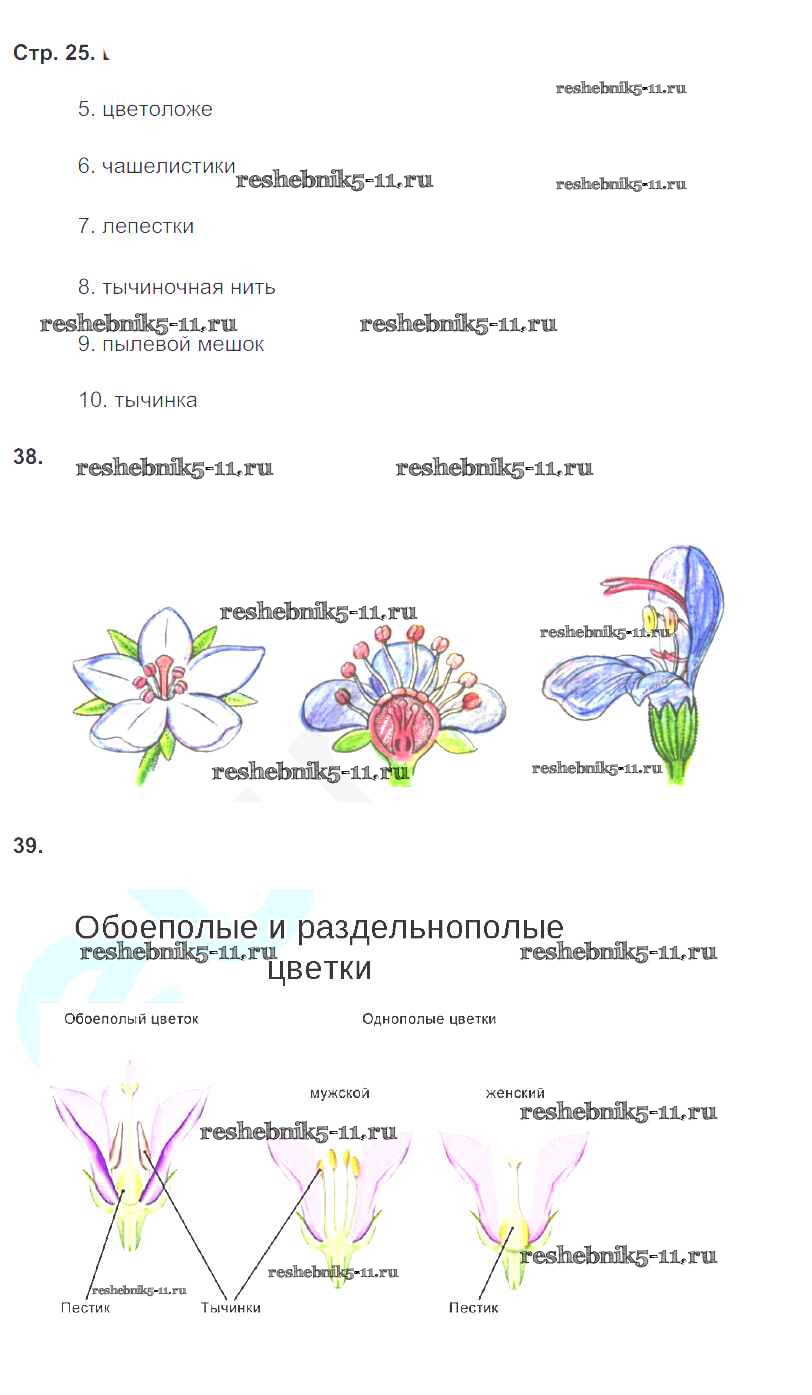 Готовая домашняя работа с ответами по Биологии за 6 класс Сонин Рабочая тетрадь Живой организм Дрофа 2020 ФГОС - Страницы 25