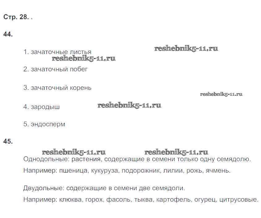 Готовая домашняя работа с ответами по Биологии за 6 класс Сонин Рабочая тетрадь Живой организм Дрофа 2020 ФГОС - Страницы 28