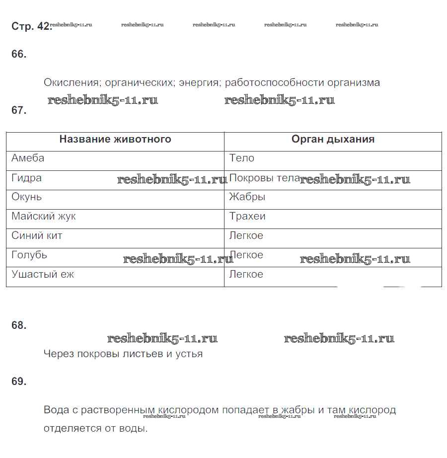 Готовая домашняя работа с ответами по Биологии за 6 класс Сонин Рабочая тетрадь Живой организм Дрофа 2020 ФГОС - Страницы 42