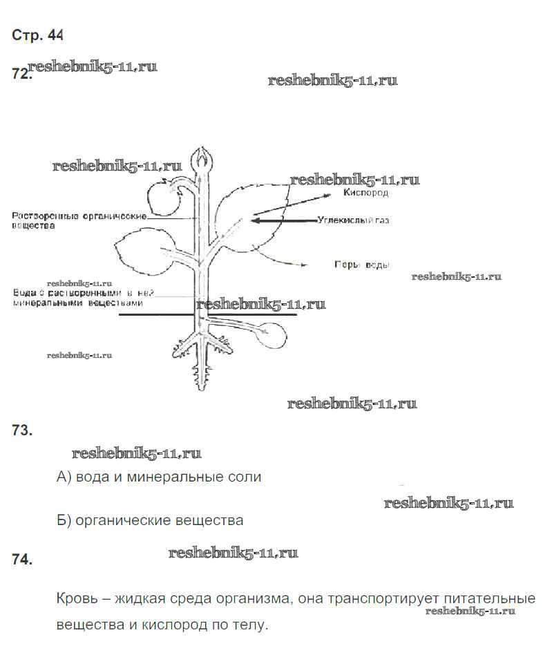 Готовая домашняя работа с ответами по Биологии за 6 класс Сонин Рабочая тетрадь Живой организм Дрофа 2020 ФГОС - Страницы 44