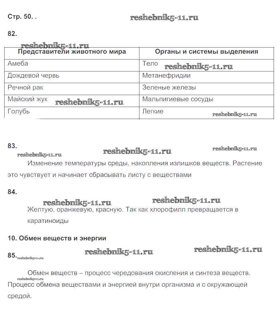 Готовая домашняя работа с ответами по Биологии за 6 класс Сонин Рабочая тетрадь Живой организм Дрофа 2020 ФГОС - Страницы 50