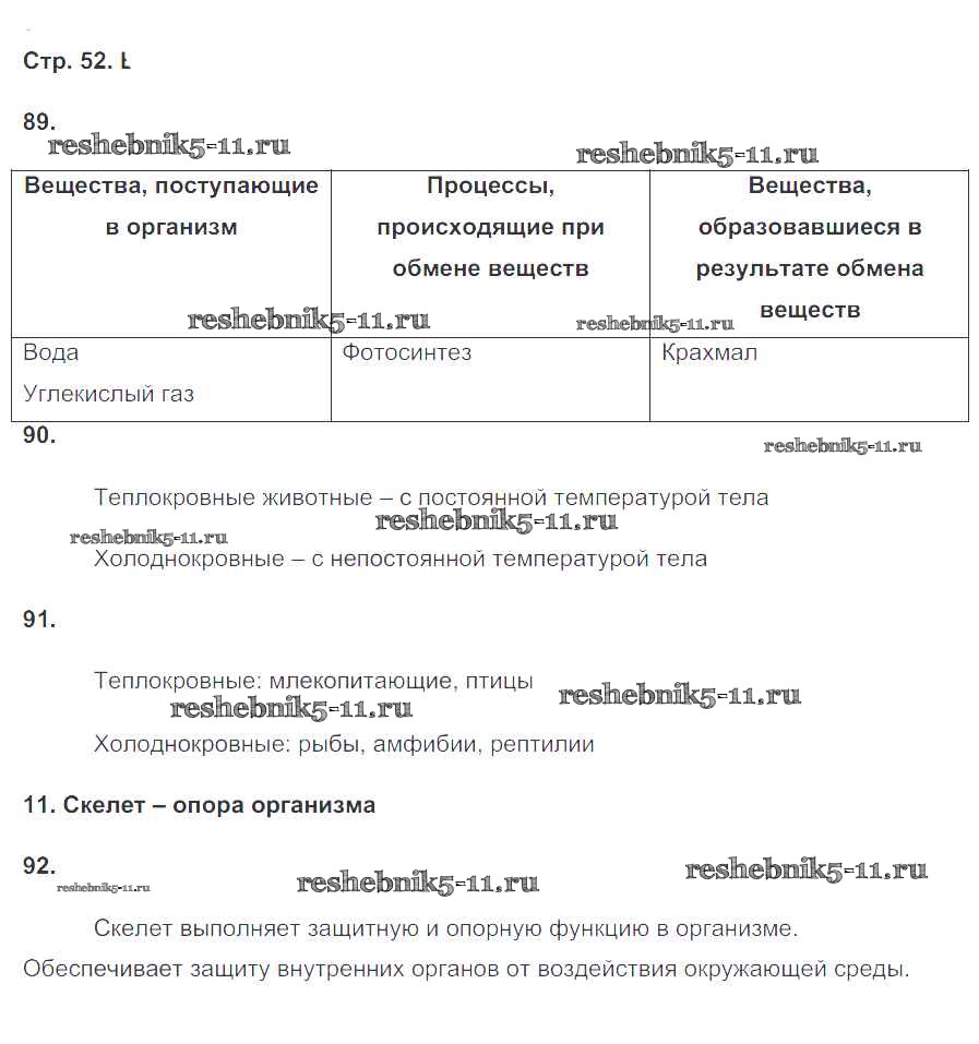 Готовая домашняя работа с ответами по Биологии за 6 класс Сонин Рабочая тетрадь Живой организм Дрофа 2020 ФГОС - Страницы 52