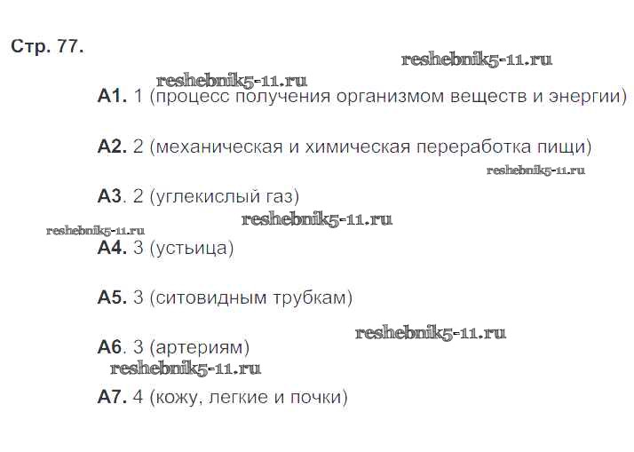 Готовая домашняя работа с ответами по Биологии за 6 класс Сонин Рабочая тетрадь Живой организм Дрофа 2020 ФГОС - Страницы 77