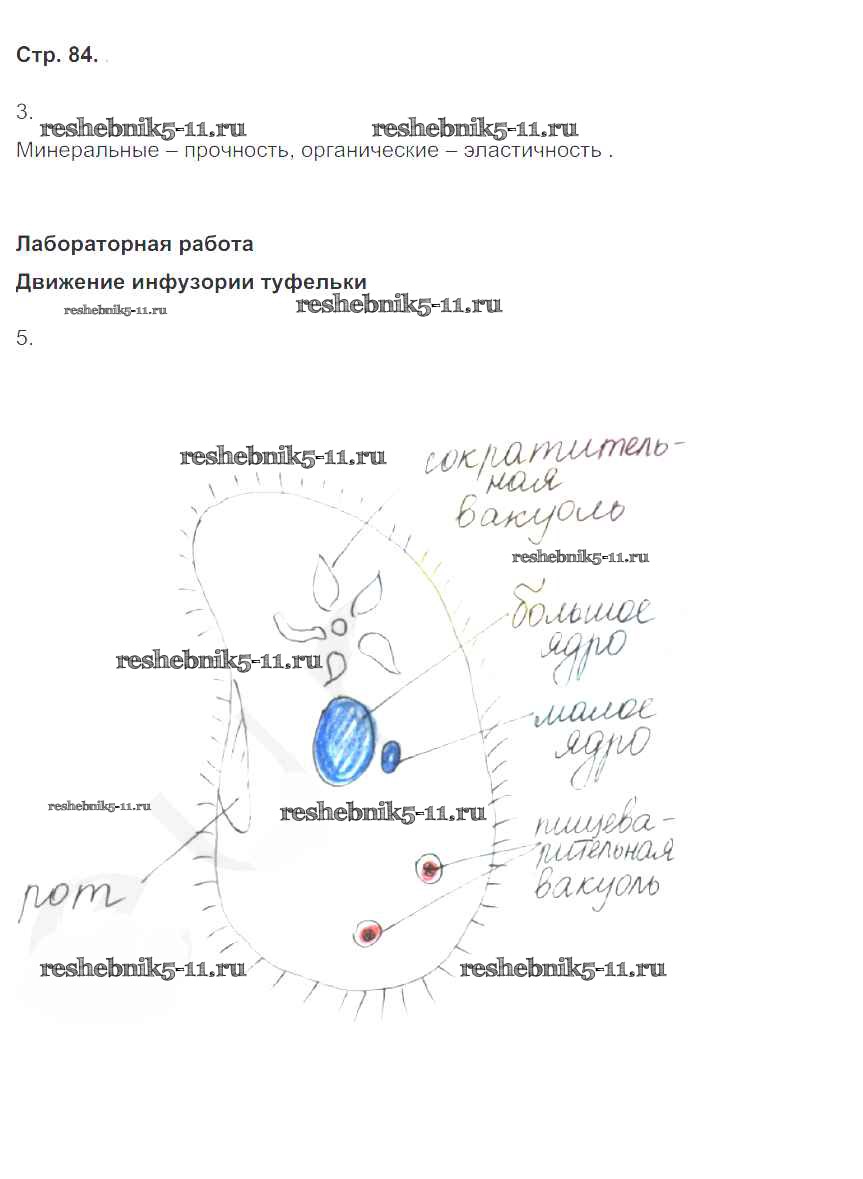 Готовая домашняя работа с ответами по Биологии за 6 класс Сонин Рабочая тетрадь Живой организм Дрофа 2020 ФГОС - Страницы 84