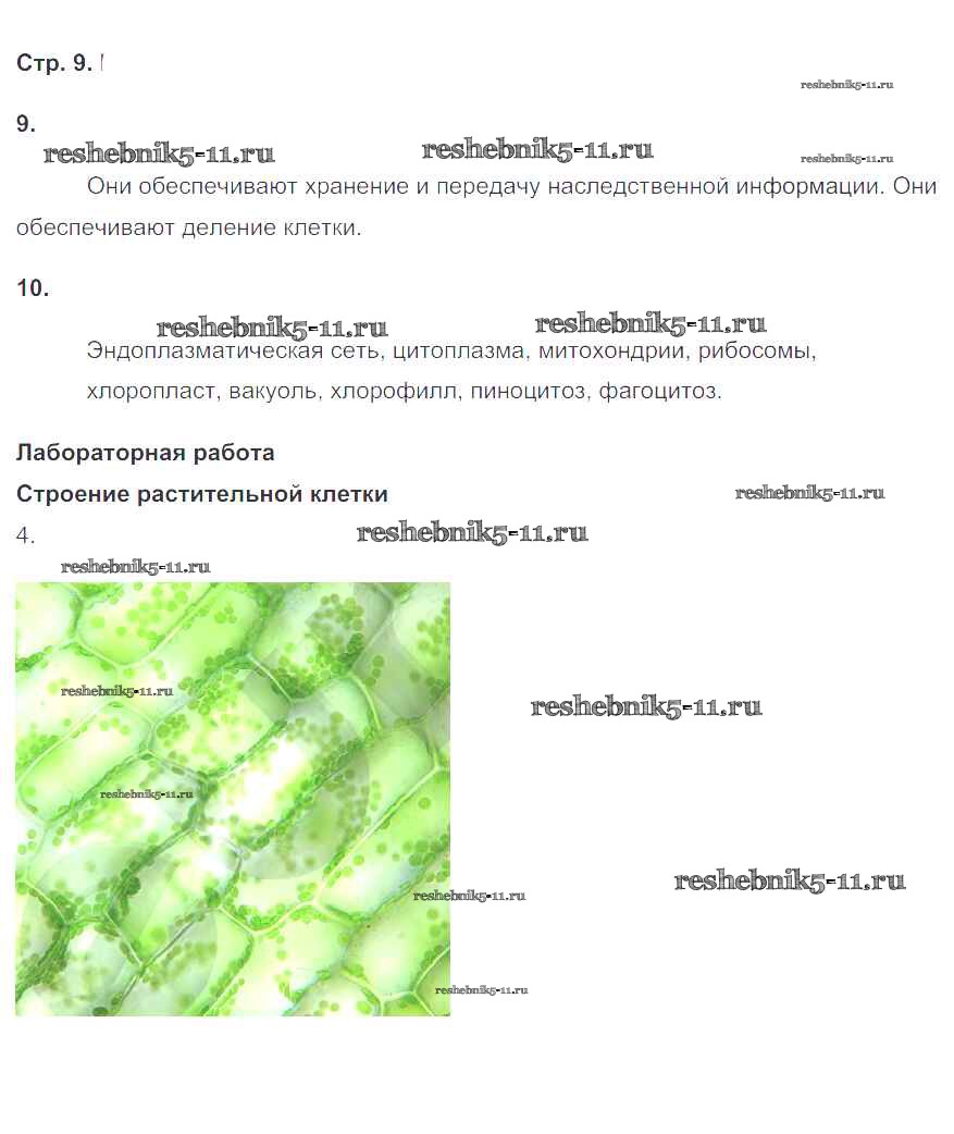 Готовая домашняя работа с ответами по Биологии за 6 класс Сонин Рабочая тетрадь Живой организм Дрофа 2020 ФГОС - Страницы 9