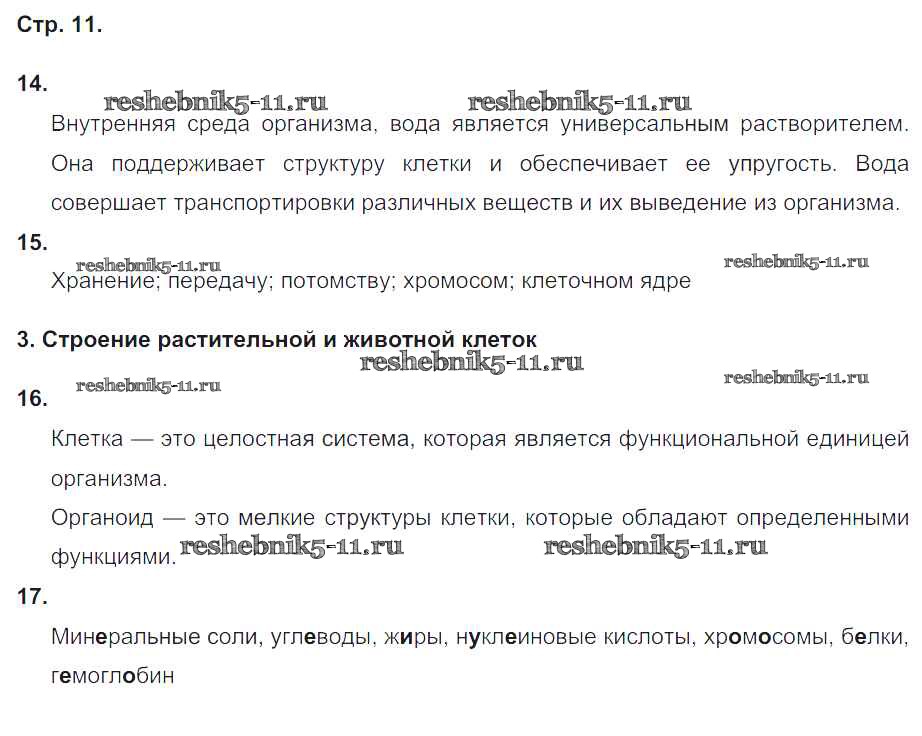 Готовая домашняя работа с ответами по Биологии за 6 класс Сонин Рабочая тетрадь Живой организм Дрофа 2017 ФГОС - Страницы 11
