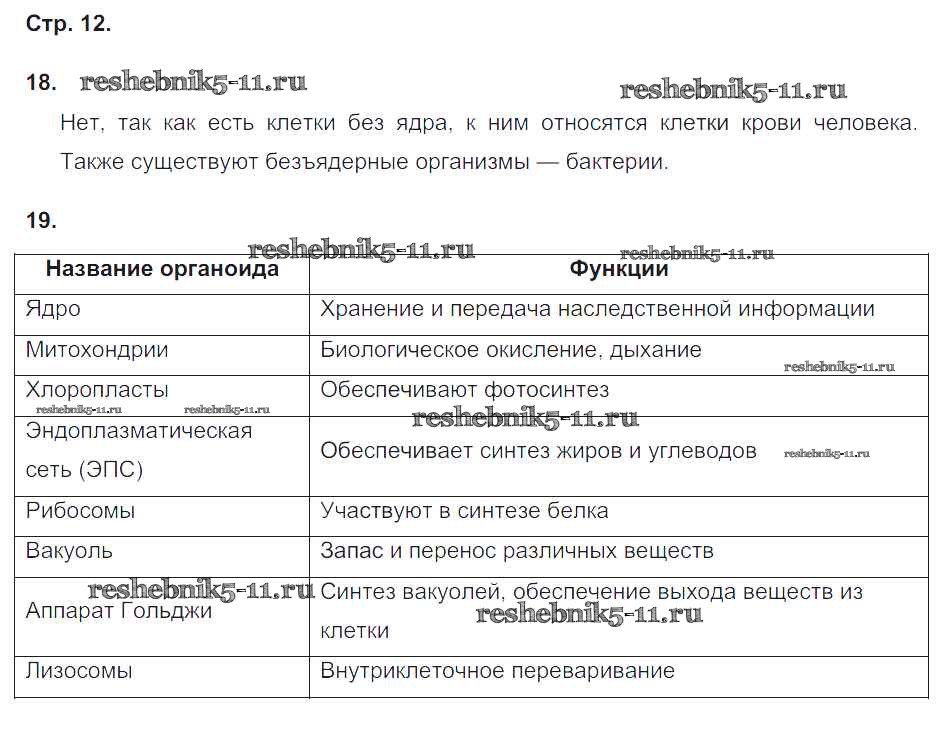 Готовая домашняя работа с ответами по Биологии за 6 класс Сонин Рабочая тетрадь Живой организм Дрофа 2017 ФГОС - Страницы 12