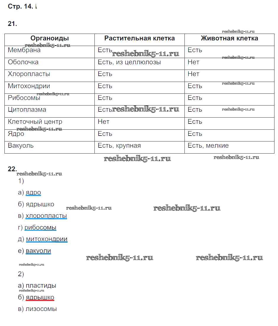 Готовая домашняя работа с ответами по Биологии за 6 класс Сонин Рабочая тетрадь Живой организм Дрофа 2017 ФГОС - Страницы 14