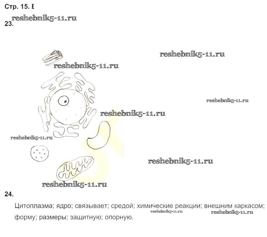 Готовая домашняя работа с ответами по Биологии за 6 класс Сонин Рабочая тетрадь Живой организм Дрофа 2017 ФГОС - Страницы 15